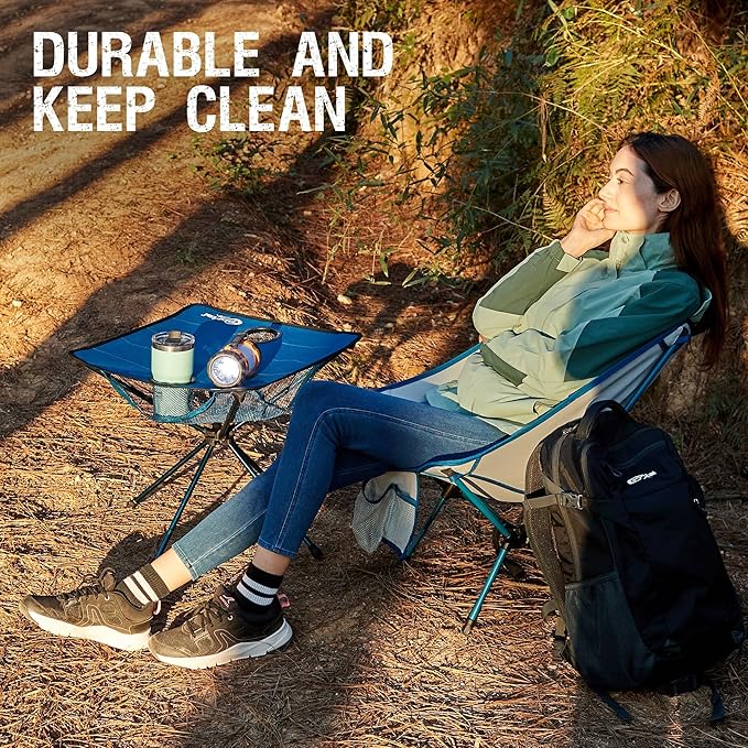 - Long-lasting and Stable: Our portable camping table legs are made from aerospace-grade aluminum, and the triangular structure and joints allow the table to support 66 pounds. The removable 600D polyester table top is wrinkle-resistance, long-lasting, and easy to clean (hand washes only)