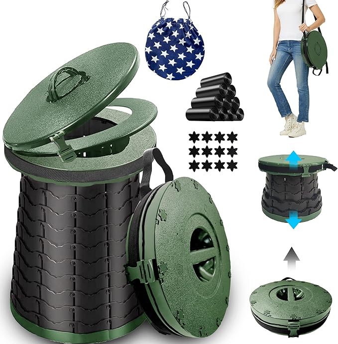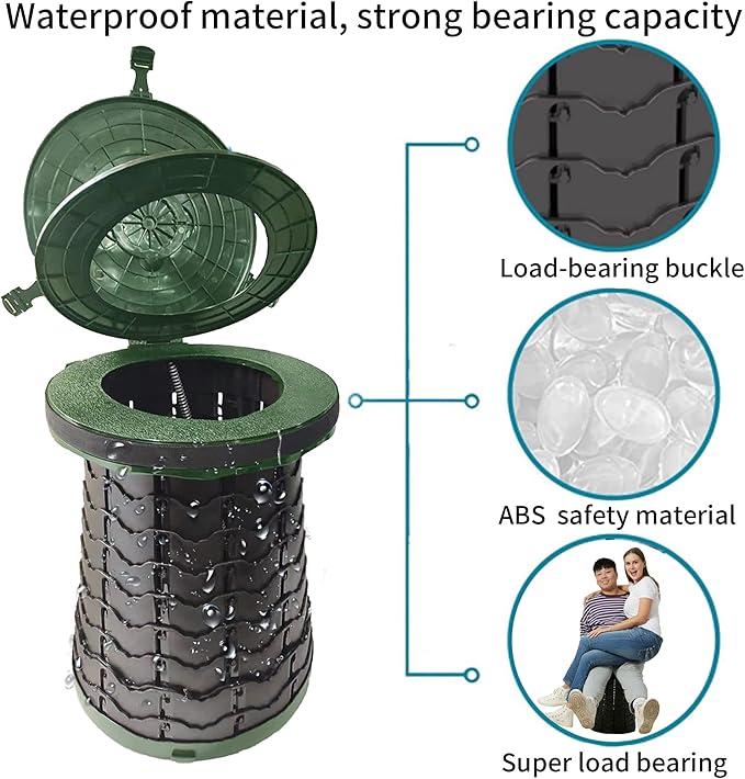 - 【MULTI-FUNCTIONAL】: It canbe used not only as a toilet for outdoors, but also a camping stool chair trash can, small stool, storage box, telescoping stool,indoor toilet for the elderly, vomiting bucket for pregnant women, etc. Ergonomic Design, oval form, Ideal size, Comfortable for whole family use.