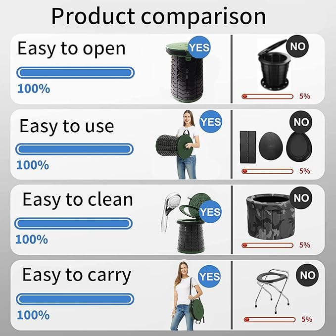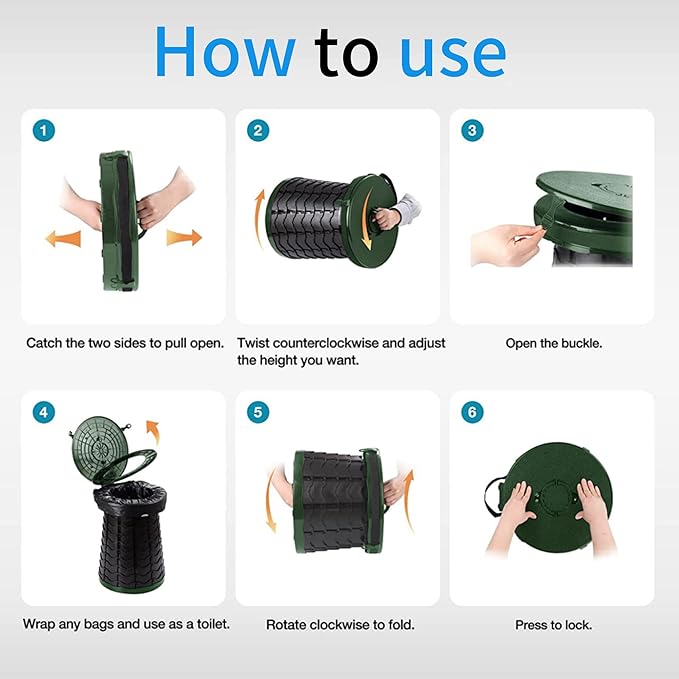 - 【SIMPLE TO USE】: not Assemble , super easy and quick! Compatible with any 6-8 gallon bag for easier clean up to make doing your business on the road a breeze.and use telescoping stool toilet u will like it.