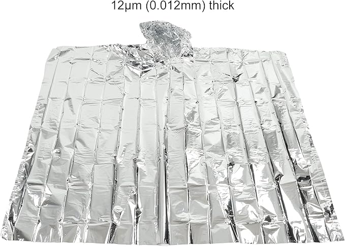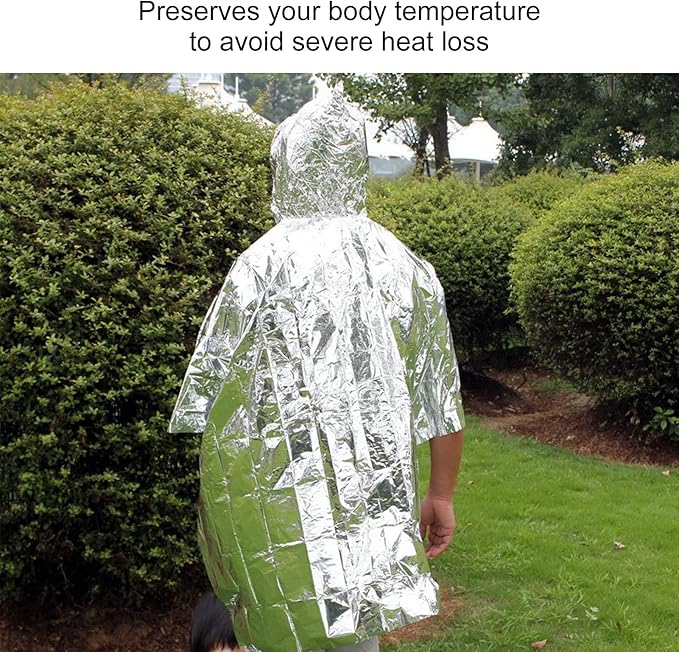 - [Durability Rain Poncho]: The emergency blanket and foil blanket emergency is so affordable and you even get more value with this; These thermal blankets and foil emergency blanket are made of CPP aluminum film material; The thick Mylar foil and emergency blanket foil is very tough and can withstand even the harshest of outdoor weather conditions; They can also be applied with emergency shelters, emergency sleeping bags, emergency camping or other lifesaving gear for extra safety