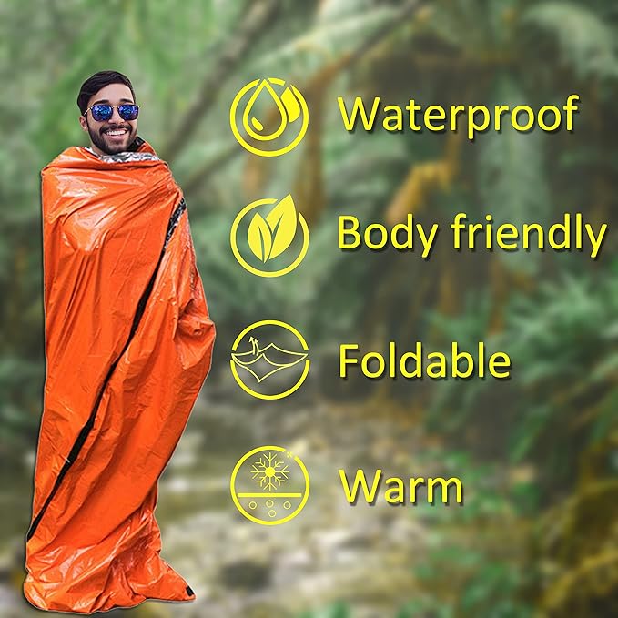 Eco-Fused Emergency Sleeping Bags, Blankets, Tents, and Survival Whistles - Weather Resistant Thermal Outdoor Survival Supplies Essentials - Suitable for All Ages - Camping, Hiking, Climbing