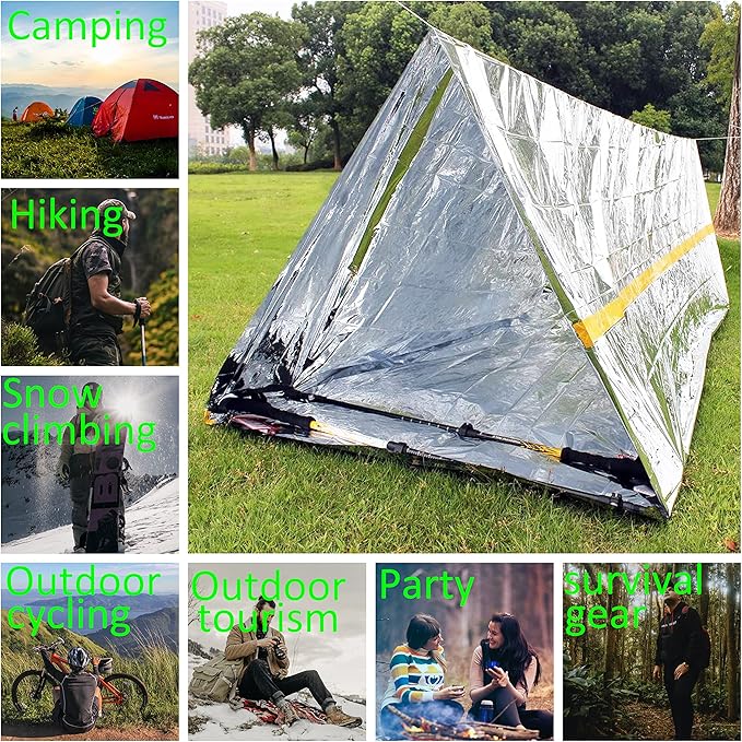 - OUTDOOR ACTIVITY ESSENTIALS ⭆ The shelter kit is an ideal lightweight pack to survive bad weather conditions while camping or during outdoor adventures. Easy to carry and useful if there are car breakdowns and can be distributed as typhoon or hurricane emergency supplies.