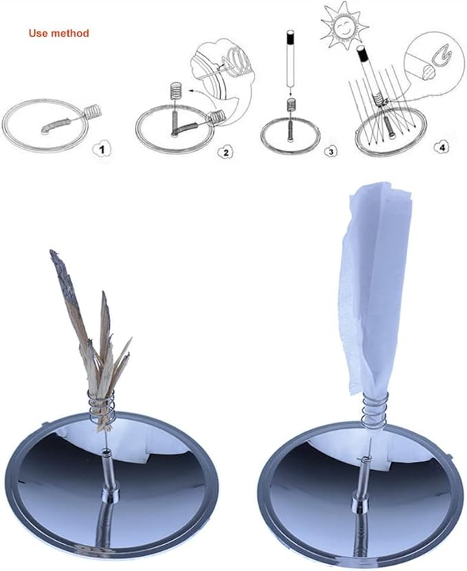 - DURABLE & LIGHTWEIGHT - Use for solar fire starters, solar spark emergency lighter, solar light, fire starter, survival tool, camping lighter, spark lighter, survival lighter, edc fire starter, edc lighter. Parabolic mirror designed to focus the sun's radiant energy to a precise focal point with super high temperature. Material: Plastic+Aluminum; Can be used for make-up mirror for ladies.