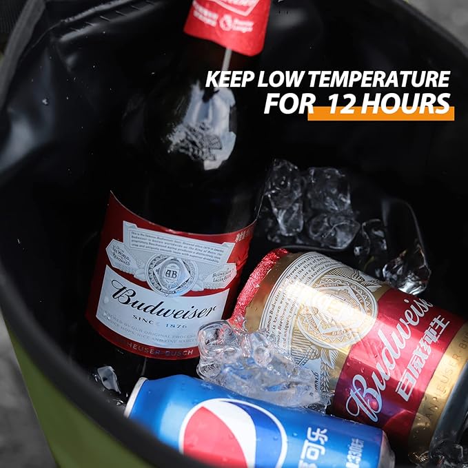 - Insulated Backpack Cooler Material: Consists of three layers thermostatic material, respectively 500D PVC fabric and scraper cloth and 10mm NBR cotton material, backpack coolers insulated leak proof, can preserve a constant temperature of 18-48 hours. The inside is made of high-density aluminum film, which is thickened to effectively prevent water leakage. Compared with standard cooler bags, this soft-sided cooler backpack is waterproof, leak proof and warm insulated.