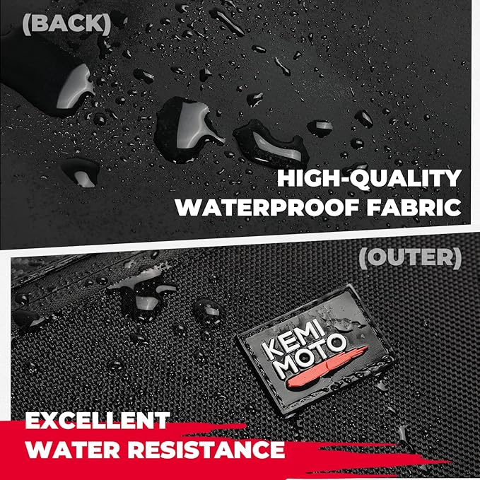 - Waterproof Double Zipper: The KEMIMOTO bag is designed with a double-ended waterproof zipper. Extended zipper pulls for easy operation with gloves. With 1680D water-resistant material, so mud and rain do not easily penetrate the bag