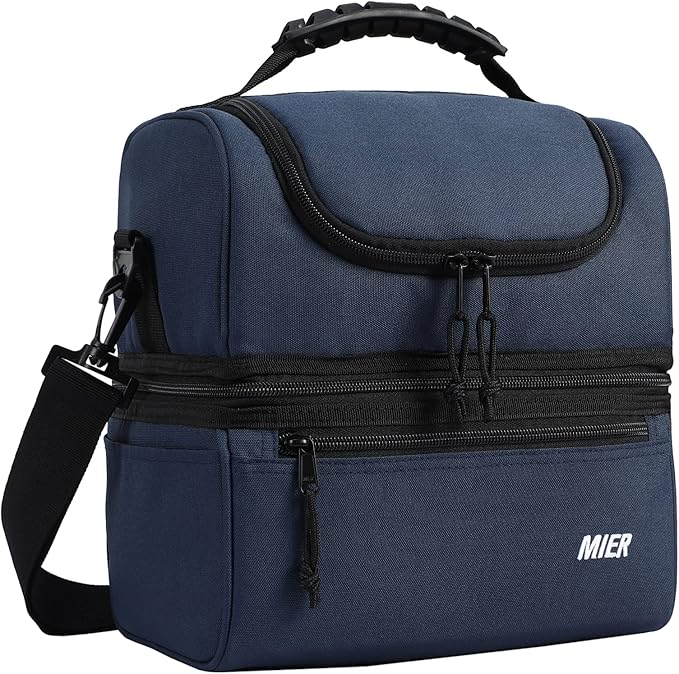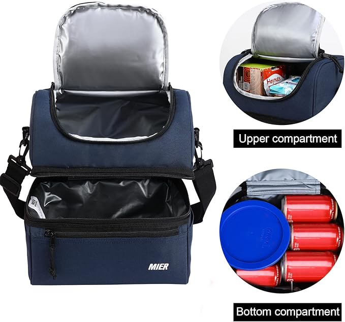 MIER Adult Lunch Box Insulated Lunch Bag Large Cooler Tote Bag for Men Women to Work Travel Daytrip, Double Deck Cooler (Navy, Large)