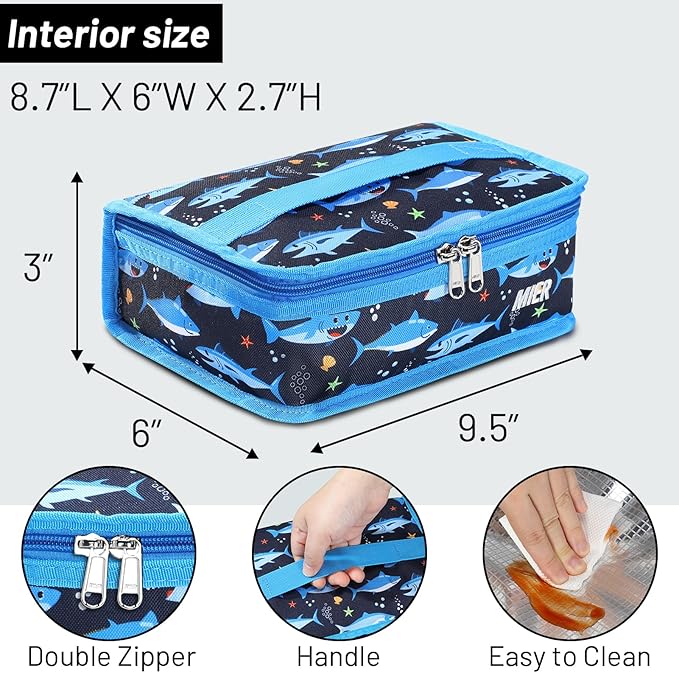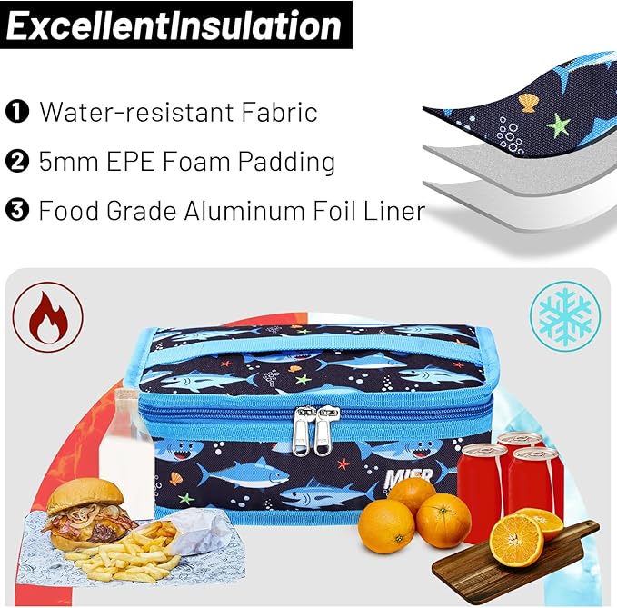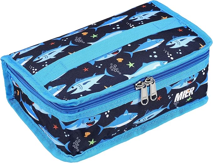 MIER Portable Thermal Insulated Cooler Bag Mini Lunch Bag for Kids, Blue Shark