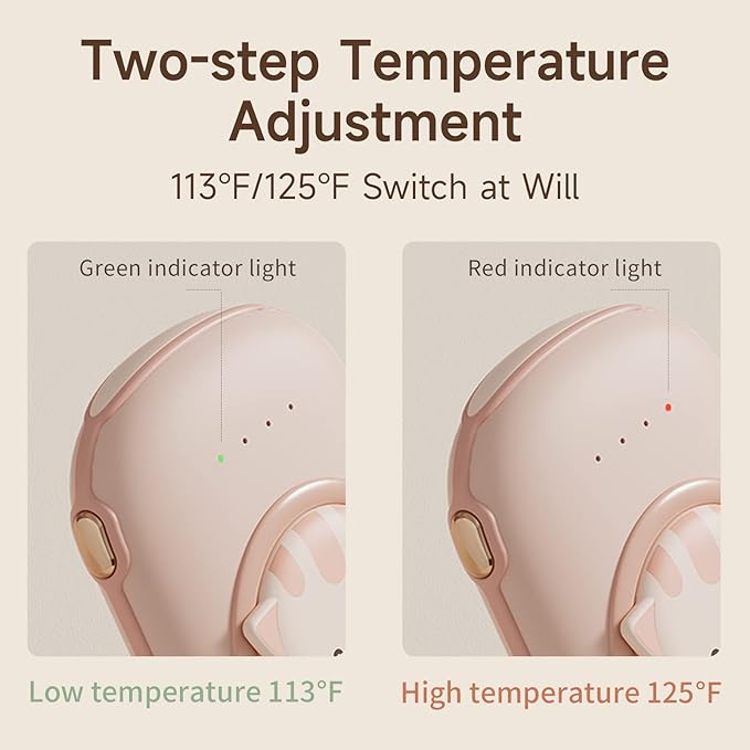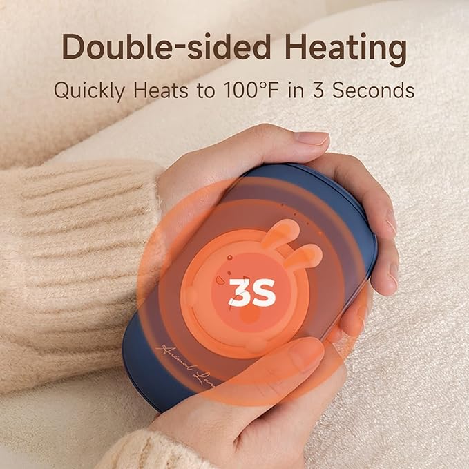 - 🔥【Double-sided heating & 2 levels temperature】 The reusable hand warmer can quickly heat up to 98.6℉ on both sides within 3s, no need to wait for warmth. 113℉/125.6℉ two temperature settings can be easily adjusted, and usb hand warmer can last for 8-24 hours according to different temperature environments.