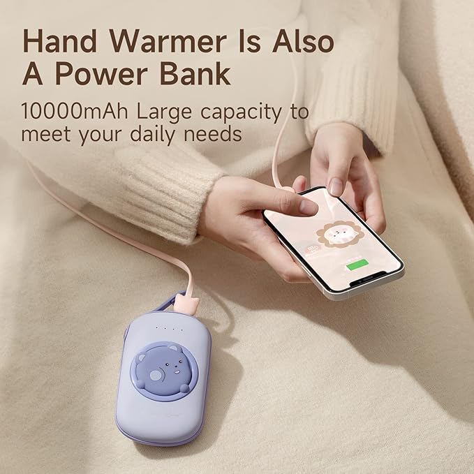- 🔥【Hand warmer and charging 2-in-1】 This rechargeable hand warmer is also a 10000mAh portable power bank which can be used for hand warming and emergency charging of cell phones during outdoor sports, camping, skiing, hiking, and work in winter. The cold LED digital indicator to keep you informed of the remaining power and heating temperature.