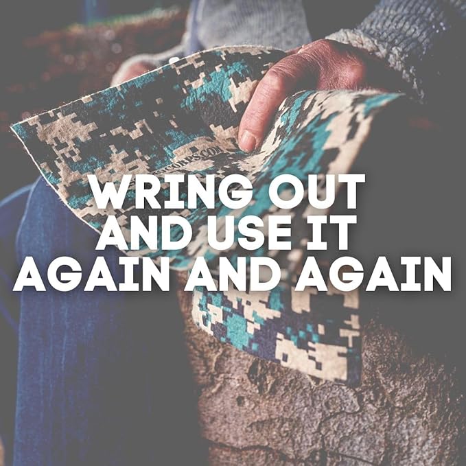 - 🌱Durability: In addition to superior performance, our rugged towels come in a digital camouflage pattern that is printed on both sides to provide full coverage in the field. No matter what kind of muck you throw at it, a single towel will replace over a dozen ordinary towels.