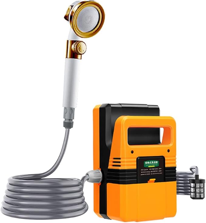 - Compact and Portable: The camping shower measures 20*12*10.5cm and weighs only 1.6kg, making it easy to carry and ideal for anywhere without a power source and/or tap, allowing you to easily remove water from your bucket, river, lake or other water source Pumping.