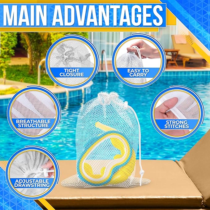 - 🟡Breathable and Versatile Mesh Storage Bags: This drawstring mesh bag is ideal for carrying swim gear, sports equipment, balls, and even dirty or wet clothing. Ideal for any situation.