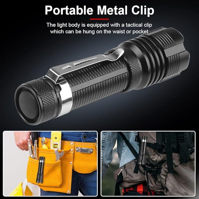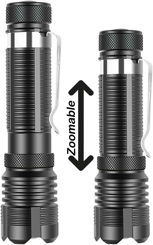 Mini Flashlight Powerful,Super Bright Small Flash Light, Zoomable 5 Modes Pocket Flashlight, Waterproof Adjustable Brightness for Camping, Running and Emergency