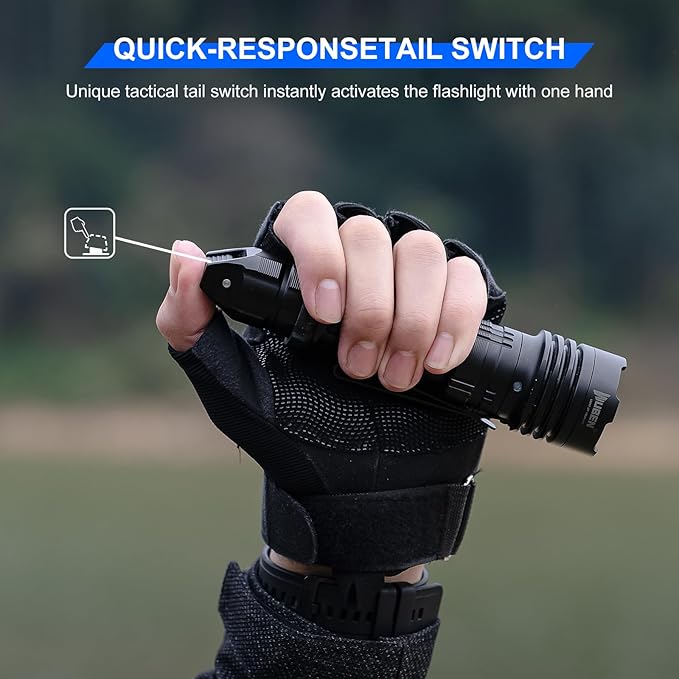 - TACTICAL MODE & OUTDOOR MODE:Tactical mode has 4 light modes: High / Low / Strobe / SOS, Outdoor mode has 6 light modes and memory function: High / Med / Low / Eco / Strobe / SOS. Unique tactical tail switch makes operation easier.