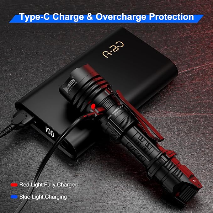 - SAFETY AND WARRANTY: Flashlight high lumens 2000 high efficiency and large output LED chip with overcharge and overdischarge function, WUBEN tactical flashlight has a 100% satisfaction guarantee and 1 year free warranty service.