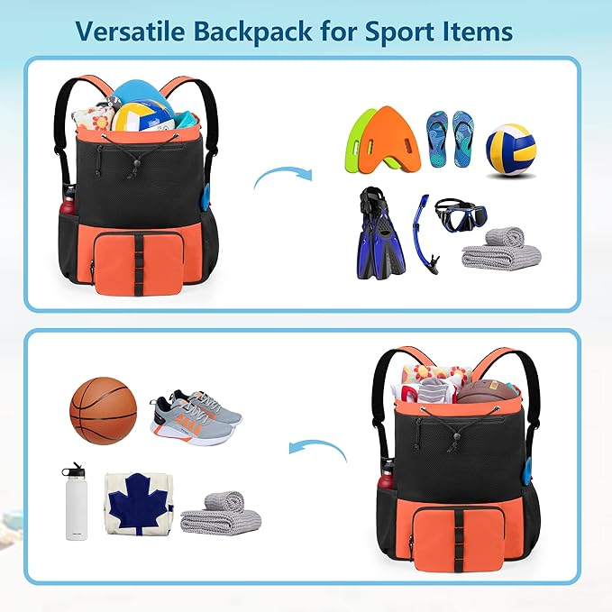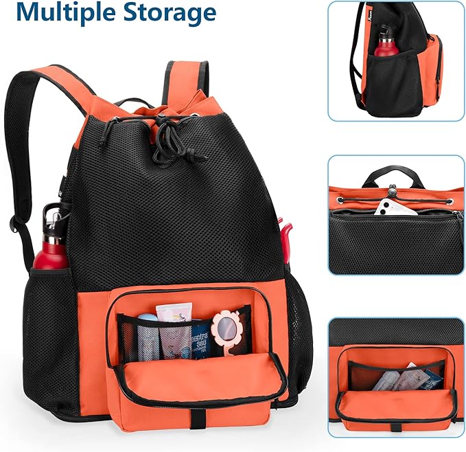 - MULTIPURPOSE BAG: Features large capacity and multiple pockets, the mesh back pack is perfect to organize your beach essentials or gym items. Great choice to serve as beach bag, gym backpack, swim backpack and pool bag.