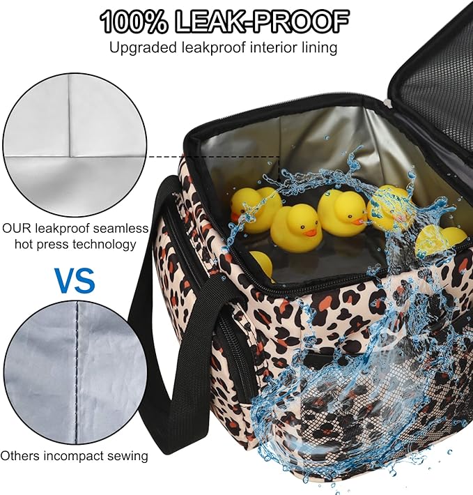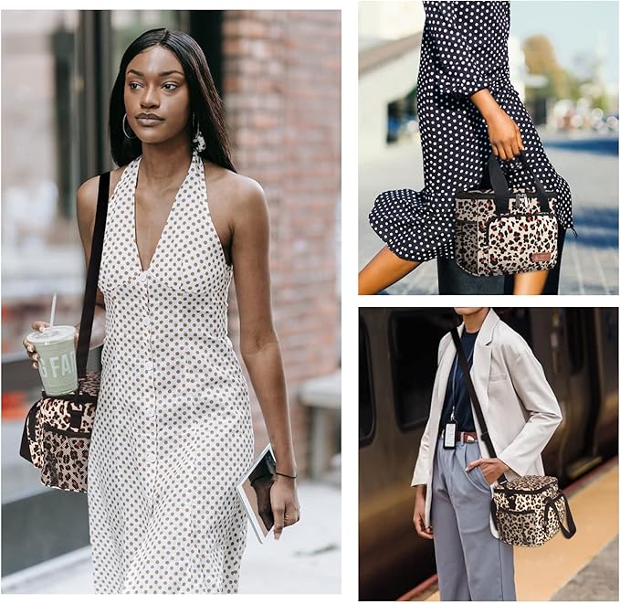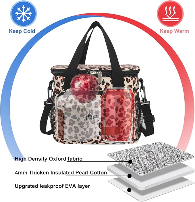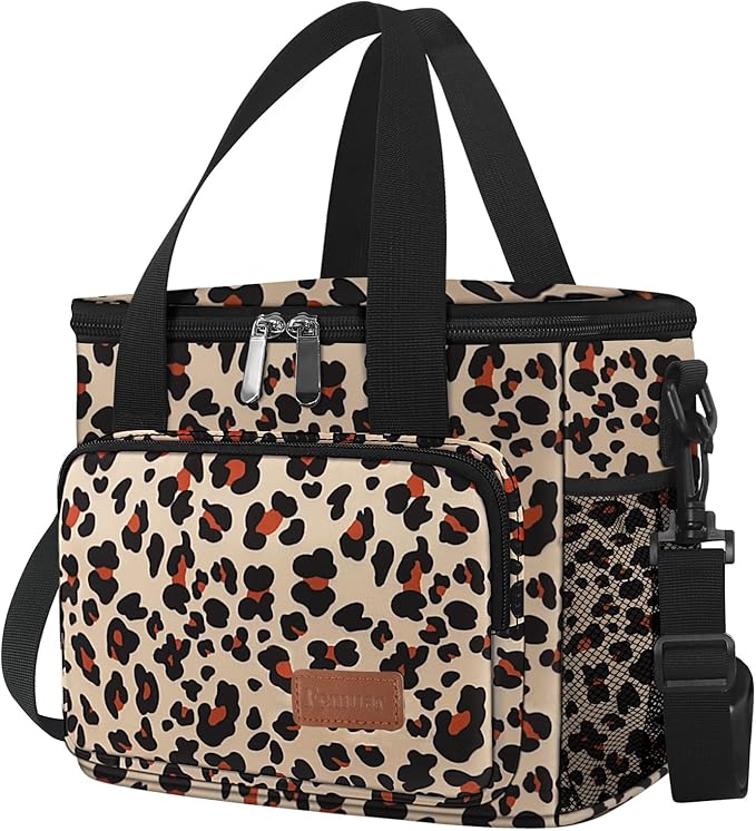 Femuar Lunch Bags for Women/Men, Insulated Lunch Bag for Work Office Picnic - Lunch Cooler Bag Leakproof Lunch Box with Adjustable Shoulder Strap - Leopard Print
