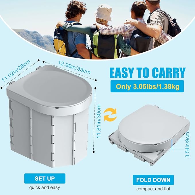 Portable Camping Toilet, Folding Toilet for Adults with Lid and Retractable Toilet Paper Holder, Waterproof Porta Potty with Carry Bag and Disposible Liners for Camping, Hiking, RV Travel, Road Trips