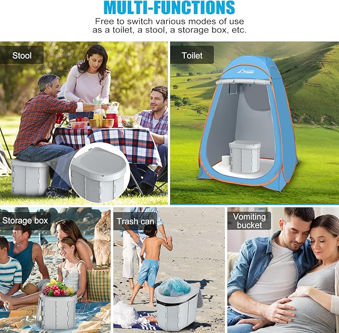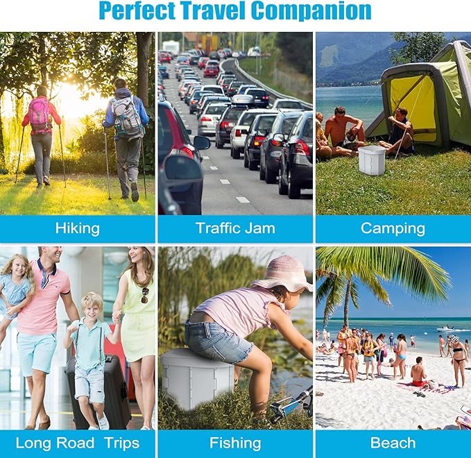 - 【Multifunctional and Widely Applicable】With lid, it can not only be used as an outdoor toilet, but also as a trash can, a storage box, a stool, a vomiting bucket, etc. to satisfy your different needs when taking outdoor activities. Perfect for backpacking, traveling, camping, fishing, hiking, long road trips, and more.
