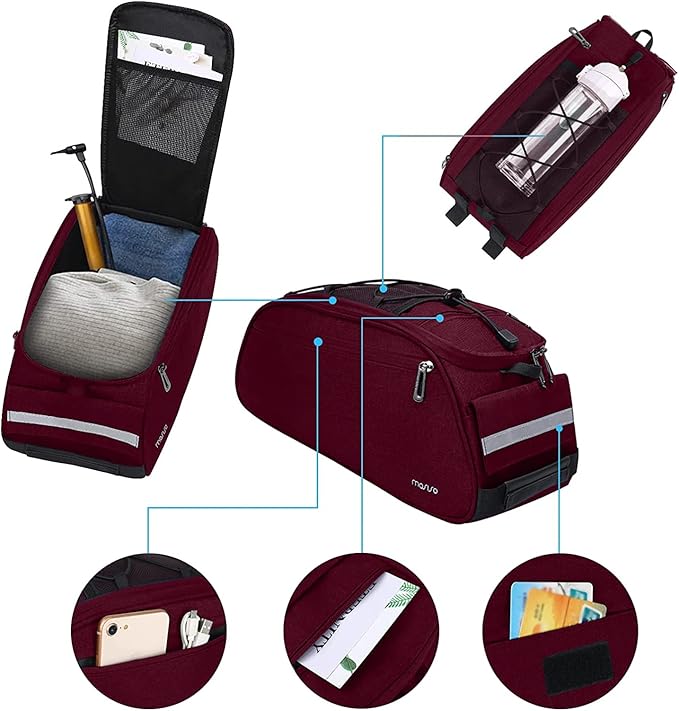 - 4 hook-and-loop fastener straps is stable enough to hold this bike bag on the backseat. Make sure it will not move around even though you're riding on a rugged road.