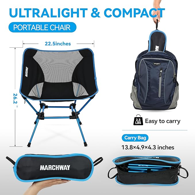 MARCHWAY Ultralight Folding Camping Chair, Heavy Duty Portable Compact for Outdoor Camp, Travel, Beach, Picnic, Festival, Hiking, Lightweight Backpacking (Sky Blue)