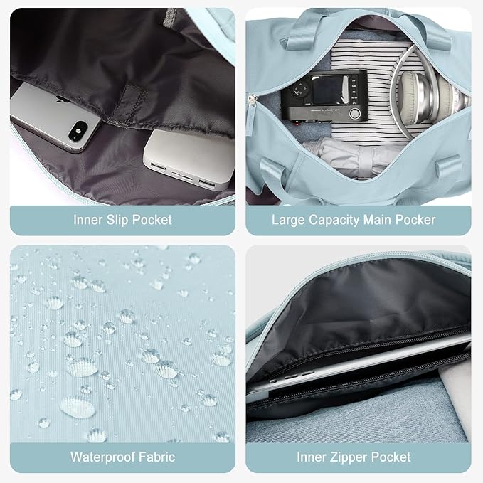 Gym Bag for Women & Men with Wet & Shoe Compartment, Small Duffle Bag for Travel, Sport, Gym, Workout, Overnight, Weekender, Carry-on - Light Blue