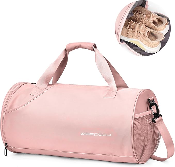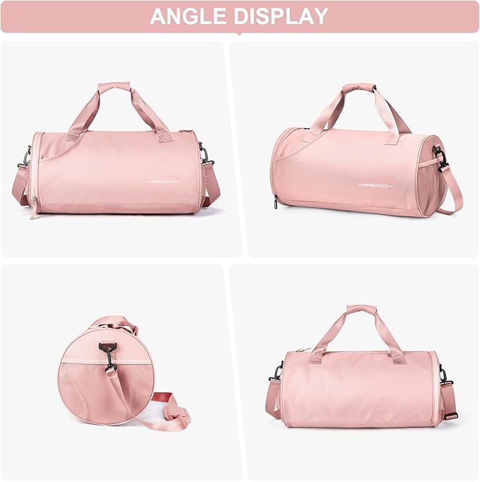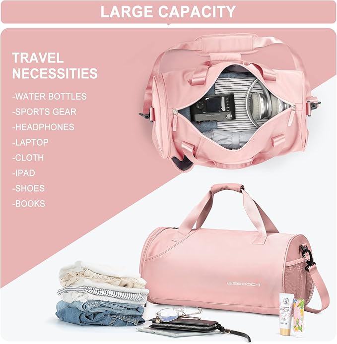 Pink Gym Bag for Women & Men with Wet & Shoe Compartment, Small Duffle Bag for Travel, Sport, Gym, Workout, Overnight, Weekender, Carry-on