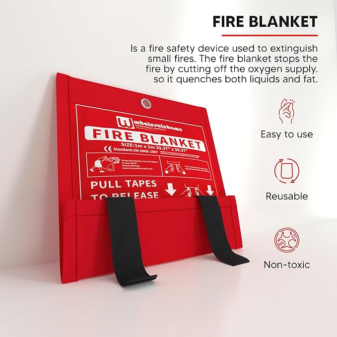 - Protect Yourself Against Heat - At 1x1m, this fire extinguisher blanket is large enough to cover your body in case you need to escape from a house fire. You can also put it over your kids or pets.