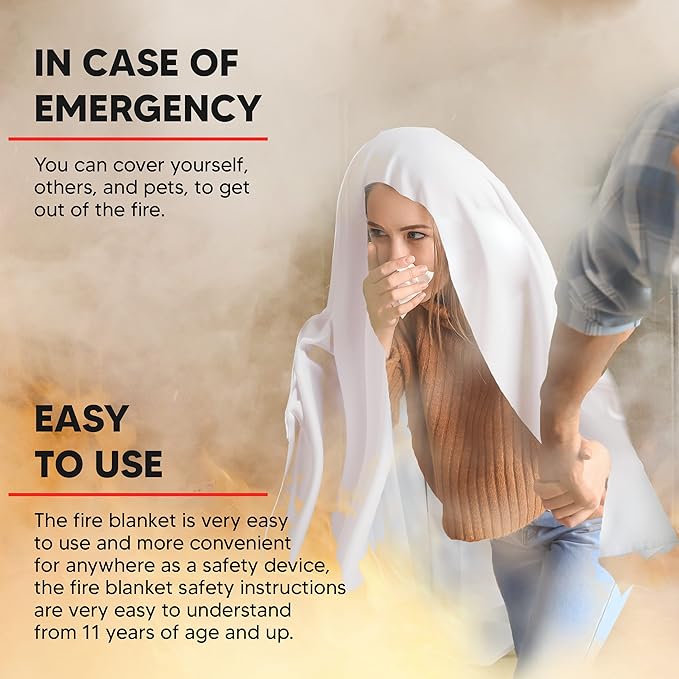 - Protect Yourself Against Heat - At 1x1m, this fire extinguisher blanket is large enough to cover your body in case you need to escape from a house fire. You can also put it over your kids or pets.