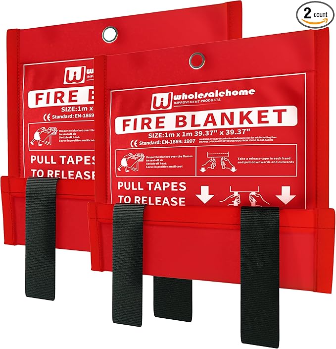 Fire Extinguisher Blanket - Heavy Duty Portable Fiberglass Emergency Blanket - Puts Out Grill & Grease Flames - Safe & Reusable Survival Fire Safety for Home, Kitchen, Car, Camping 1x1m