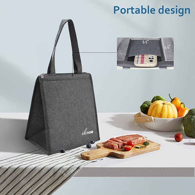 iknoe Lunch Bag Insulated Lunch Bags for Women & Men, 9L Reusable Lunch Tote, Portable Adult Thermal Large Lunch Cooler for Work Picnic Beach (Plain Grey)