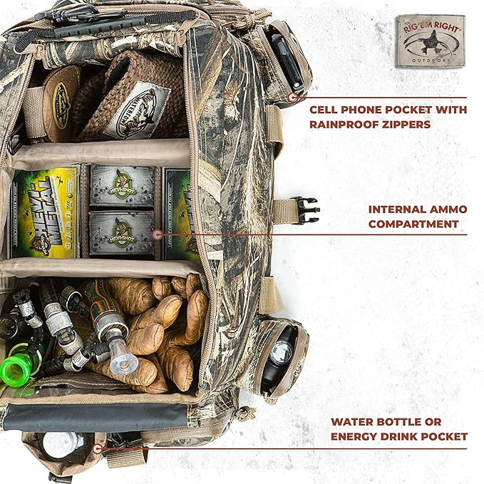 Rig'Em Right Waterfowl Standard Shell Shocker Duck Hunting Blind Bag with Sunglasses Case, Drink Holder, Ammo Compartment and More