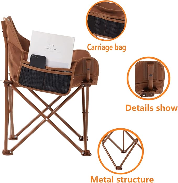 - Comfort and Convenient: When the chair unfolds, an appropriate tilt angle designed to allow you to comfortably sit on it while maintaining a normal sitting posture to chat with friends. You can store some neccesorroies such as books magazines or water bottles with the side carry bag.