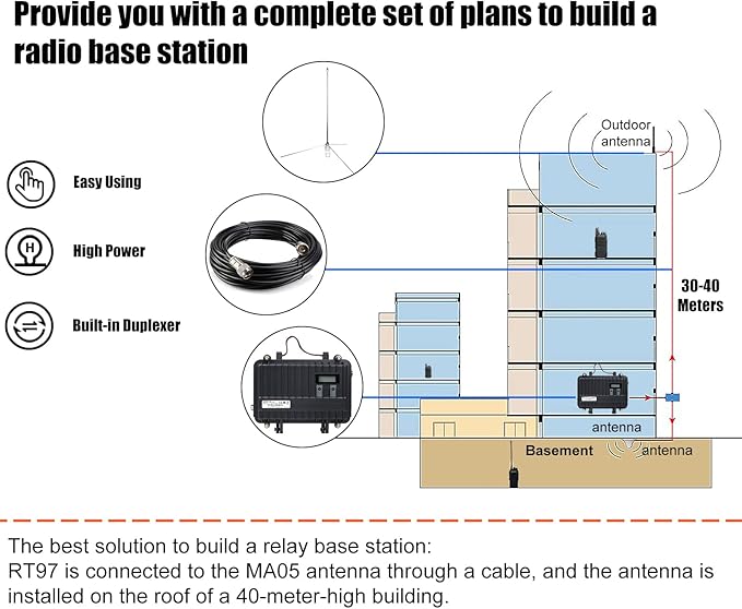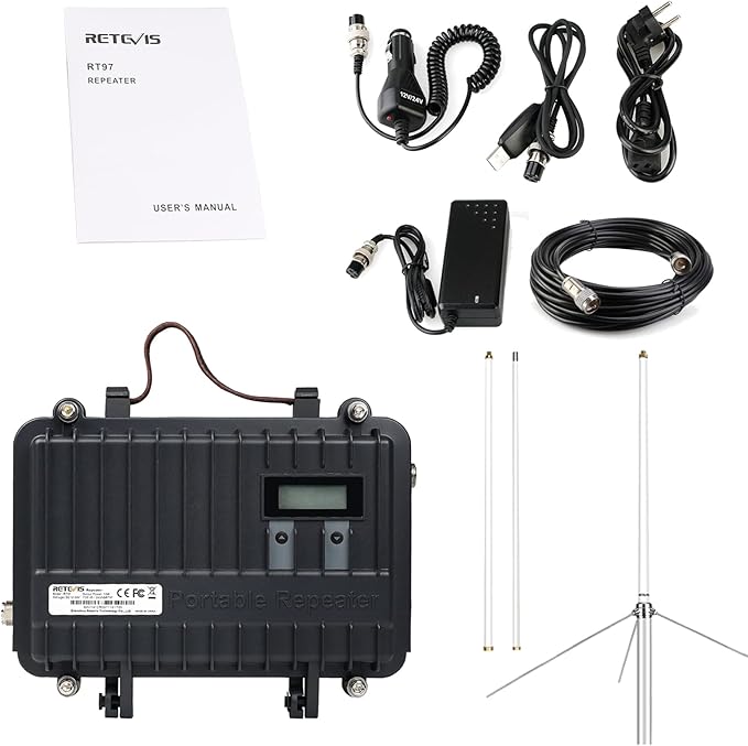 Retevis RT97 GMRS Repeater Kit, Long Range Full Duplex Mobile Repeater with MA05 Omnidirectional Antenna and Coaxial Cable, Easy to Install and Use Repeater for Family Use(1 Pack)