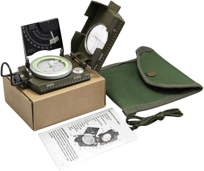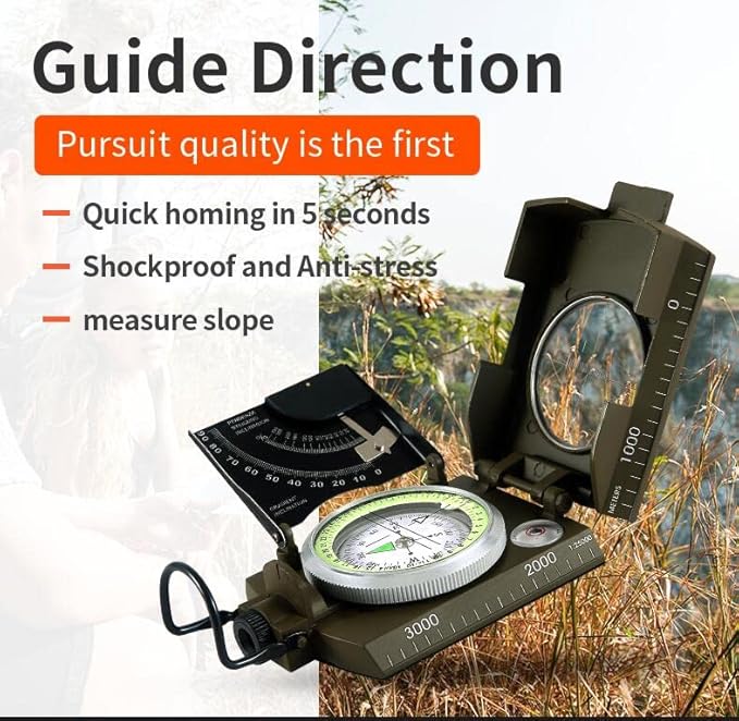 Professional Military Metal Sighting Compass Outdoor Army Clinometer Hiking Gear Compass for Lensatic Sighting Waterproof Durable Inclinometer Camping Scount Geology Activities Boating