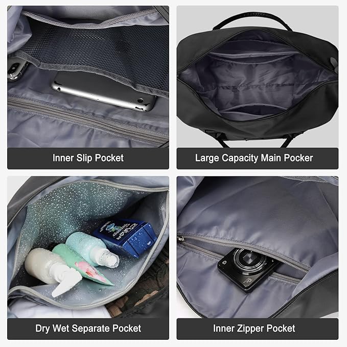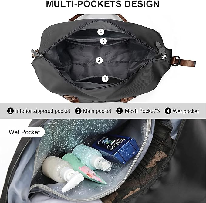 - ✅【Large and Multiple pockets Overnight bag】This overnight bag has six multiple internal and two external organizational pockets,which ensure you have a place for everything.The dimensions of the overnight bag for women are 10.63"*21.65"*7.09".You can carry it onto an airplane. Large storage space for a clothes for short trip. It has a capacity of 30L and can hold 6 to 8 pieces of summer clothes,Cosmetics, toiletries, wallets, keys, earphones, mobile power, mobile phones, files.