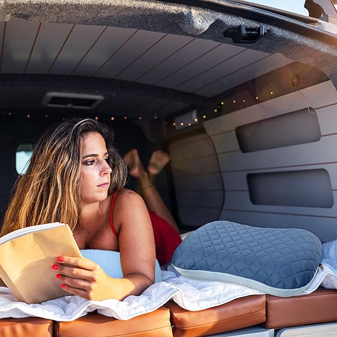 - 🏕️2 in 1 Camping Pillow: This pillow is detachable and washable. After taking off the cover, you find yourself another pillow which features TPU, soft to sleep on