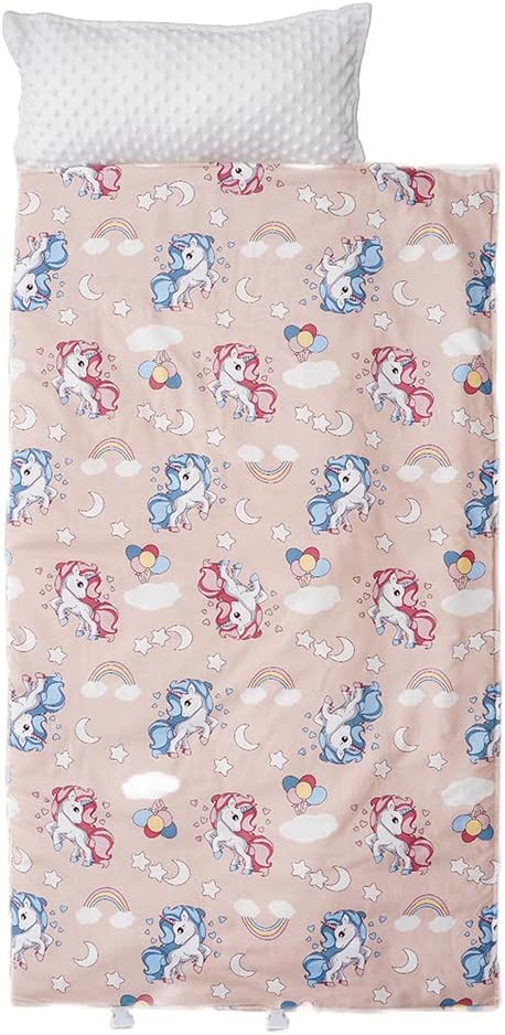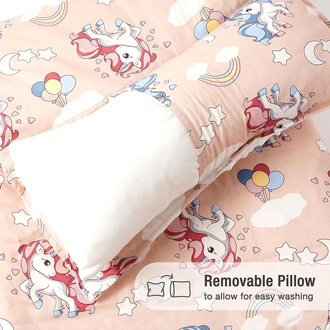 Bunnikins & Clover Toddler Nap Mat with Removable Pillow, Nap Mats for Preschool, Easy Clean Toddler Nap Pad for Kindergarten, Kids Sleeping Bag for Travel Camping