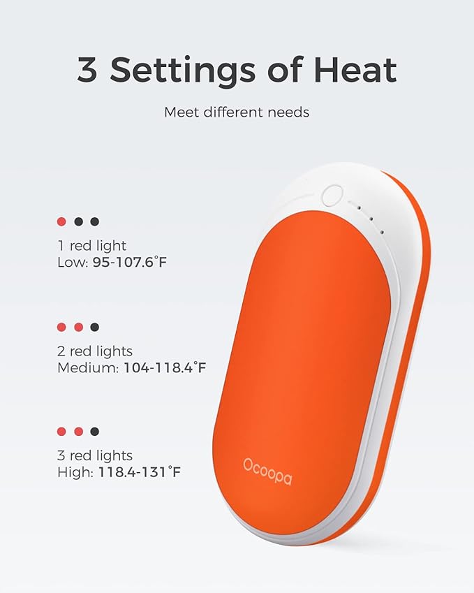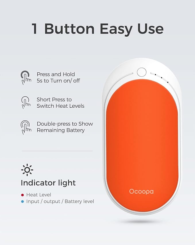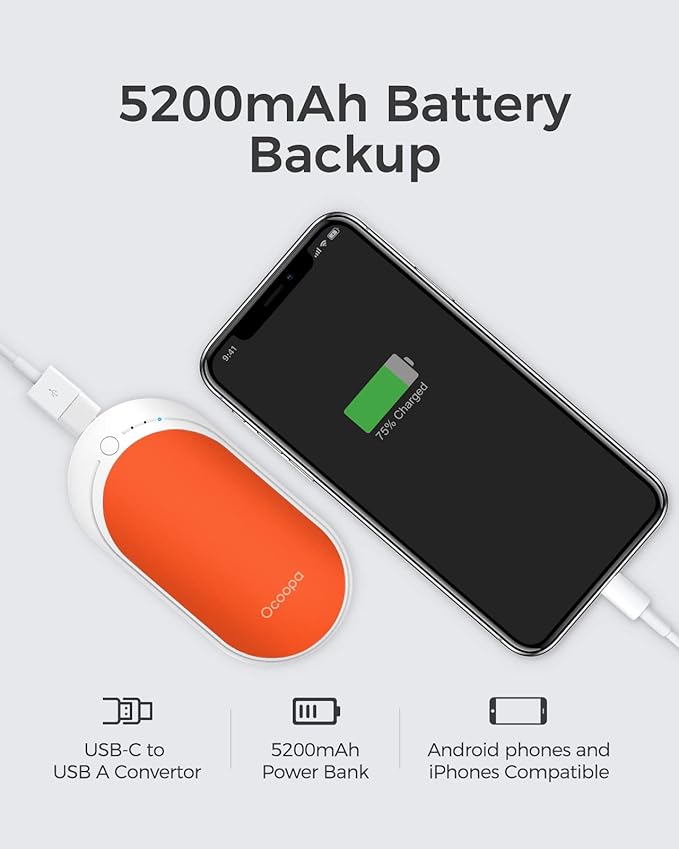 - Long-Lasting Battery: With a 5200mAh lithium rechargeable battery and USB-C charging port, you can use your hand warmer for hours and even charge your electronic devices on the go.
