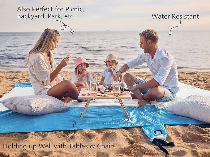 - ✔ SAND PROOF AND WATER RESISTANT-This beautifully colored blanket is made of durable ripstop nylon. Just shake the blanket and it easily gets rid of all the sand once. Not only is this wonderful fabric breathable and light-weight, but watch as water beads up and rolls off. The little water that may stay behind will dry VERY FAST.