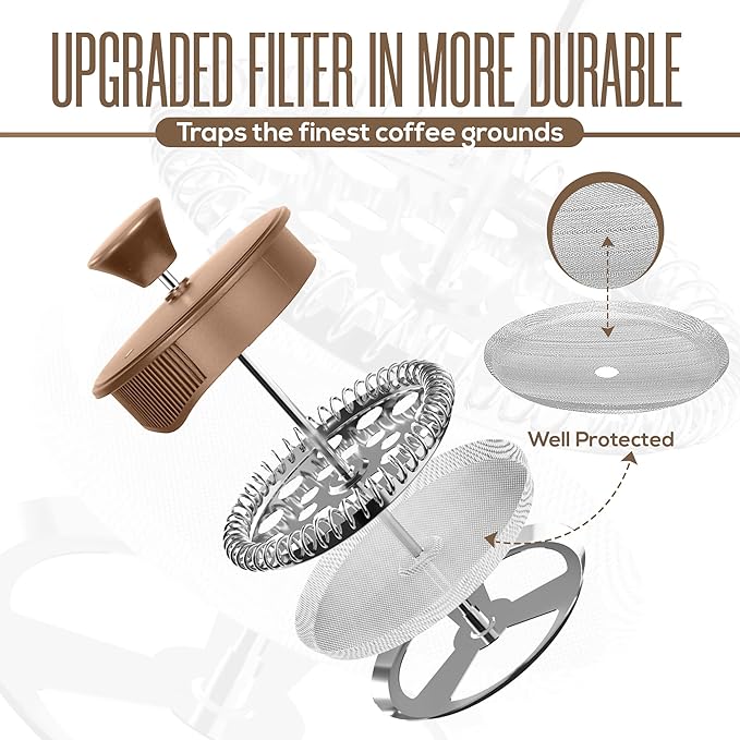 - Durable heat resistant borosilicate glass carafe beaker sits in stylish insulated plastic frame which makes pouring coffee easier and prevent wobbling