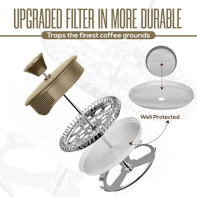 - Durable heat resistant borosilicate glass carafe beaker sits in stylish insulated plastic frame which makes pouring coffee easier and prevent wobbling