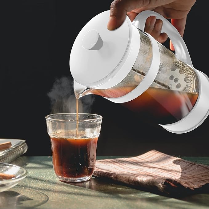 Utopia Kitchen French Press Espresso and Tea Maker with Triple Filters, Stainless Steel Plunger and Heat Resistant Borosilicate Glass (White, 34-oz (Pack of 1))