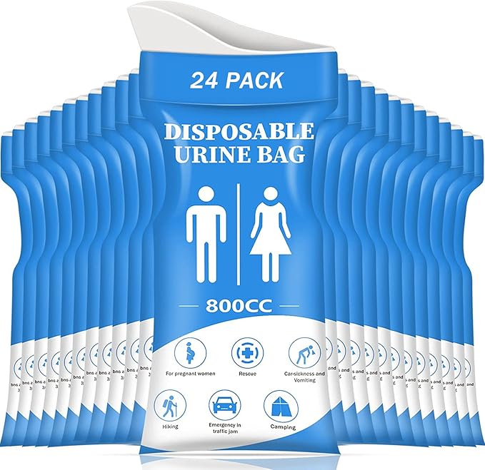 DIBBATU Disposable Urine Bag, 12/24 PCS Pee Bags for Travel for Women/Men, 800ML Emergency Portable Urinal Bag and Vomit Bags, Unisex Urinal Bag for Camping, Traffic Jams, Pregnant, Patient, Kids
