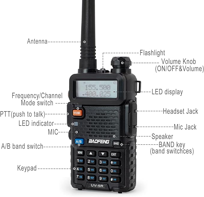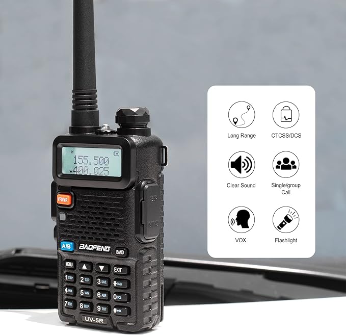 - Included Components : 2 × BaoFeng UV-5R 8-W Radio, 2 × 1800mAh Li-ion Battery, 1 × Programming Cable, 2 × RH-771 High Gain Antenna, 2 × SRH805S Short Antenna, 2 × Original Antenna, 2 × Power Adapter, 2 × Earpiece, 2 × Belt Clip, 2 × Hand Strap, 1× User's manua 2 × BaoFeng UV-5R 8-W Radio, 2 × 1800mAh Li-ion Battery, 1 × Programming Cable, 2 × RH-771 High Gain Antenna, 2 × SRH805S Short Antenna, 2 × Original Antenna, 2 × Power Adapter, 2 × Earpi… See more