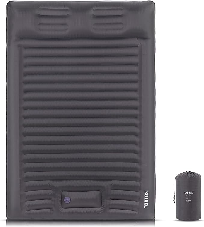 TOBTOS Double Sleeping Pad for Camping, Extra Thick 6" Camping Mattress 2 Person with Pillow Built-in Foot Pump, Inflatable Sleeping Mat for Camp, Backpacking, Hiking, Traveling
