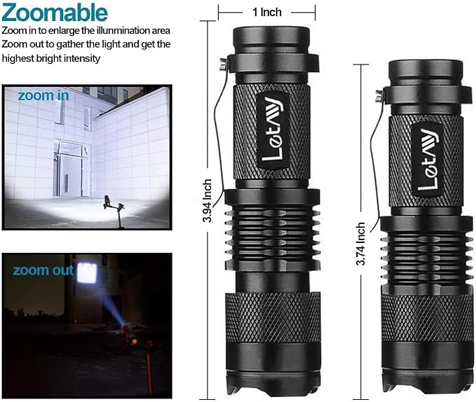 LETMY Tactical Flashlight, Super Bright LED Mini Flashlights with Belt Clip, Zoomable, 3 Modes, Waterproof - Best EDC Flashlight for Gift, Hiking, Camping, Hurricane & Power Outage (4 Pack)