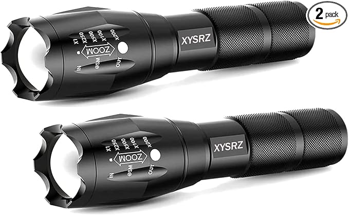 Military Grade Tactical Flashlight Single Mode Zoomable LED Flashlight for Camping Hiking Emergency, 2 Pack