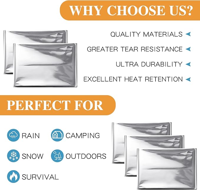 - Wide Applications: silver survival blanket can be applied as rain poncho, emergency signal, shade cover, sleeping bag liner, wind blocker, emergency signal, emergency shelter, wind blocker and more for hiking, camping, boating, hunting, and surviving in the cold, damp or wet outdoors
