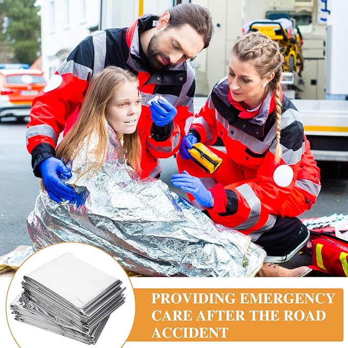- Lightweight and Portable: foil emergency reflective blankets is portable and easy to carry, only 1.7 oz and the folded size is about 4.72 x 2.95 inches, is individually wrapped and sealed for easy storage, can be putted in backpack or pocket easily